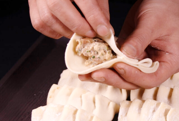 熟練のスタッフが真心込めて、モチモチの薄皮生地に餡をぎっしりと詰めて1つ1つ丁寧に手包みします。